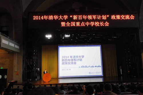 2014年清华大学“新百年领军计划”政策会暨全国重点中学校长大会于10月26日在“清华大礼堂”召开。 由于我校在为清华大学输...