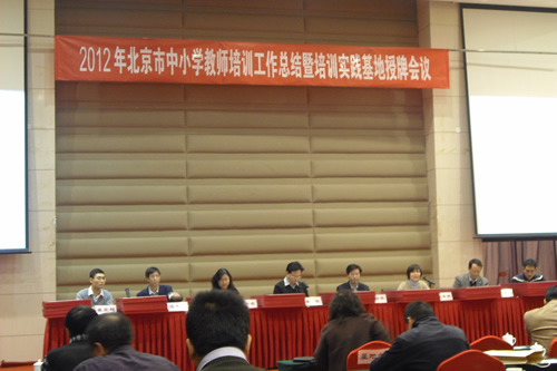 1月23日上午,“2012年北京市中小学教师培训工作总结暨培训实践基地授牌会议”在顺义乔波会议中心举行。我校王莉萍副校长和教学教...