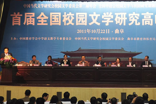 2011年10月22日,由中国教育学会中学语文教学专业委员会、中国当代文学研究会校园文学委员会主办的“首届全国校园文学研究高峰论坛暨全国校园文学成果展览会”在山东曲阜孔子研究院隆重开幕。