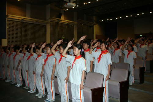 6月4日下午,初一年级同学佩戴着鲜艳的领巾汇集在礼堂,参加退队建团仪式。年级组长赵老师宣布仪式开始,当《中国少年先锋队队歌》奏起时,...