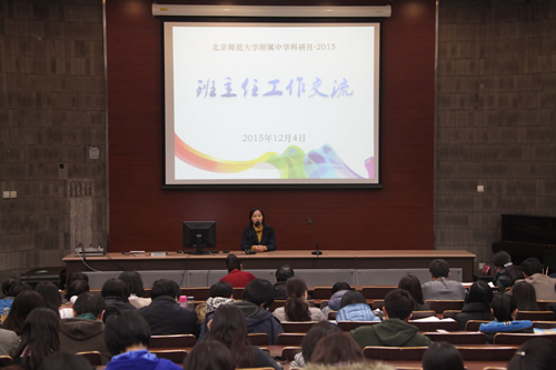 2015年12月4日,科研月系列活动之“班主任工作交流”专题研讨会在南阶梯举行,大会由教导处况莉主任主持,共有5位教师发言。张成斌...