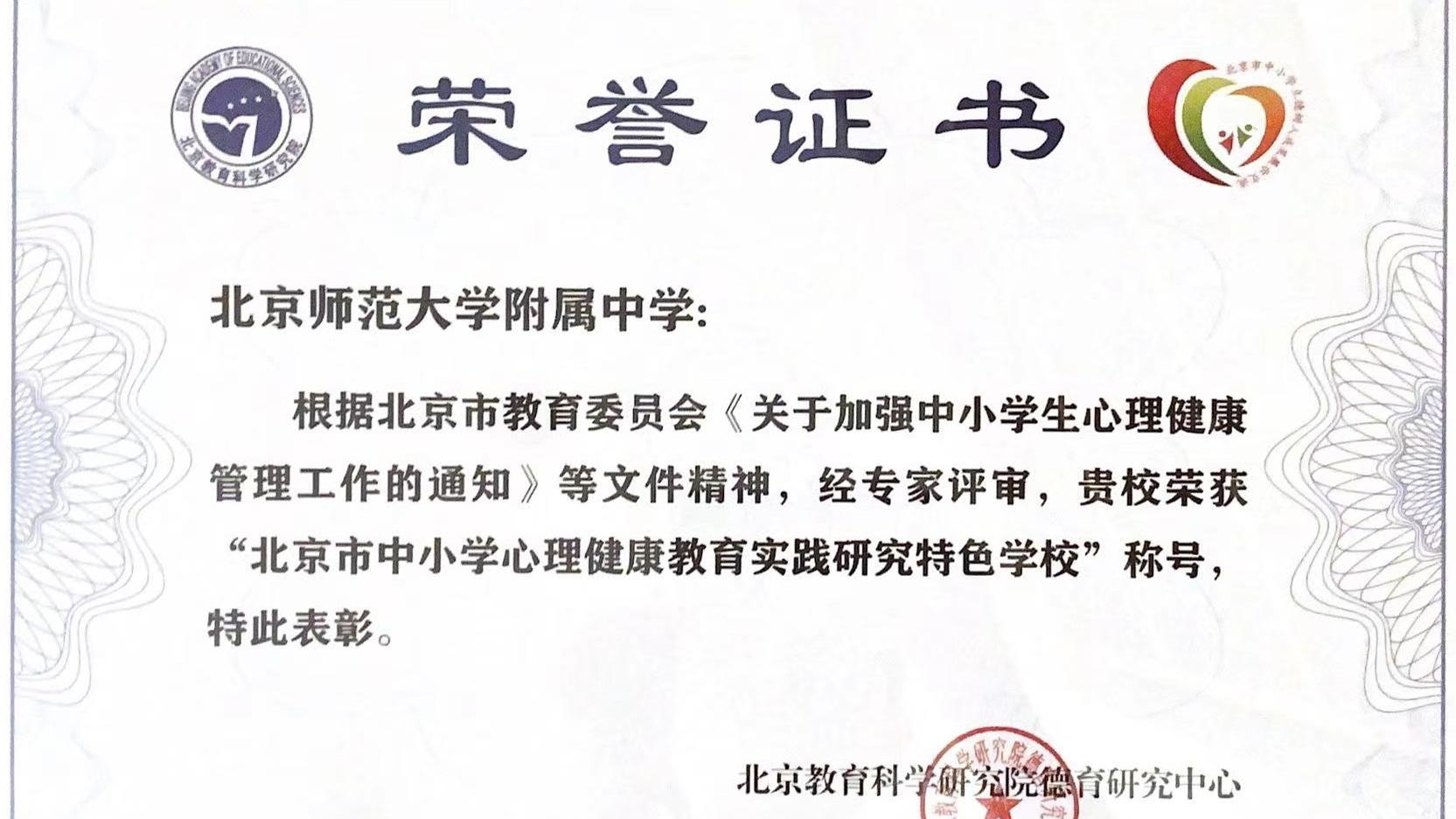 我校荣获北京市“中小学心理健康教育实践研究特色校”称号