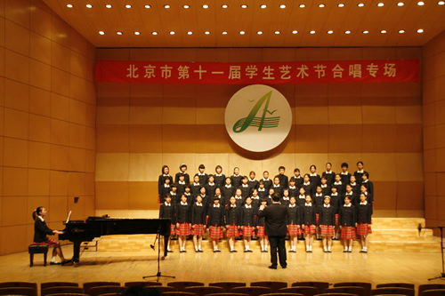 2008年4月20日,我校“附中人”合唱团参加了在国图音乐厅举行的第十一届北京市学生艺术节合唱项目高中混声甲组的比赛,在强手众多且最高组别的竞赛单元中,合唱团的同学们用他们优美的嗓音、纯净的和声、独特的艺术表现赢得了中国合唱协会众多评委及观众们的认可与好评并最终夺得一等奖,齐宏老师获得最佳指挥奖。