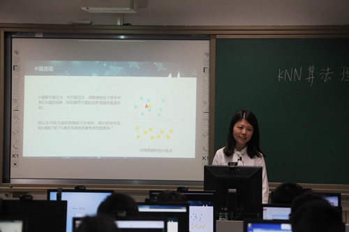 活动通过研究课的形式围绕中学阶段如何开展人工智能教育进行了研讨。我校信息组张建彬、李威、刘晓杰三位老师分别上了主题为《语音识别》、《KNN算法理解与实践》、《人工智能程序设计评价交流》的研究课。这三节课分别从体验与原理学习、算法学习、成果展示三个层面展示了我校人工智能课程的建设与开展情况。北京教科院基教研中心信息技术教研室王飞老师,在结合北京市各区人工智能课程培训与开展的基础上,上了一节《人脸识别》的展示课。让老师们从另一个角度去思考人工智能课程应该如何走进课堂。