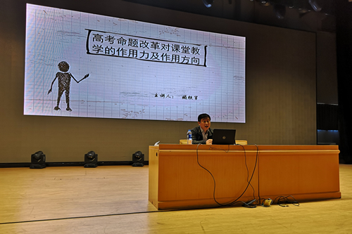 2月25日北京教育考试院臧铁军院长莅临学校为各学科教师开展高考改革讲座。臧院长首先通过分析近三年各科高考平均分及标准差得出2018年高考各科分数调整的特点。臧院长还谈到要关注高考命题理念的改变,考察基础知识、基本技能、学科基本方法、与学科相关的基本经验的运用。最后臧铁军院长讲到新高考的命题原则,并鼓励教师们要认真研究分析新高考特点,进而调整各学科教学中的侧重点,进一步提高学生的素质能力。