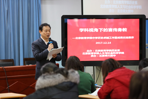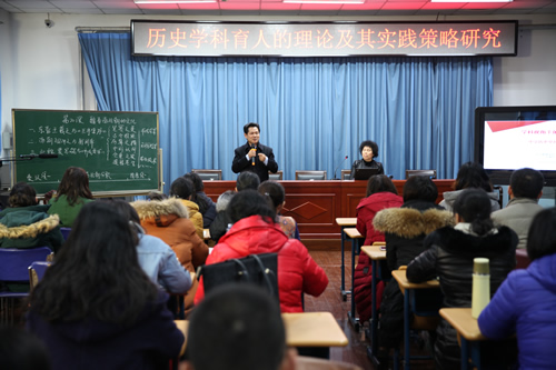 2017年12月14日上午,北京教育学院中学历史卓越工作室成果交流展示活动在优米软件下载方法南分校举行。本次活动以“历史学科育人的理论及其实践策略研究”为主题,参会人员有中国社会科学院吴伟研究员,中国地图出版社邢晓风副社长,北京教育学院人文与社会科学学院李军副院长,《历史教学》杂志社编辑,北京教育学院教务处督导专家、督学研修中心专家、历史系教师团队和卓越工作室成员,北京各区县的教研员和老师以及来自河北省部分中学的百余名教师。