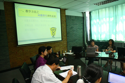 在上午的议程中,各位教研组长从本组特色出发,报告了三年来课程改革的相关情况。在课程建设方面,语文组重点讲述了校本选修课程的构建情况;艺术组谈及了音乐课程体系的实施情况。在教学内容整合方面,数学组在原有教材的基础上进行了被动整合和主动整合;历史组以备课为切入点,说明其课程的整合情况。物理组、地理组、政治组侧重于对教学方式方法的探究。生物组在教学资源库的建设方面积淀了丰硕的成果。在教学研究方面,英语组研究了高三英语复习的有效度问题;信息组进行了信息素养的学情研究。面对新课程所带来的新变化,体育、研究性学习、通用技术等教研组都做出了积极的应对。化学组针对本组的课改情况进行了较为全面的总结。