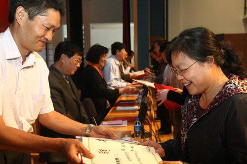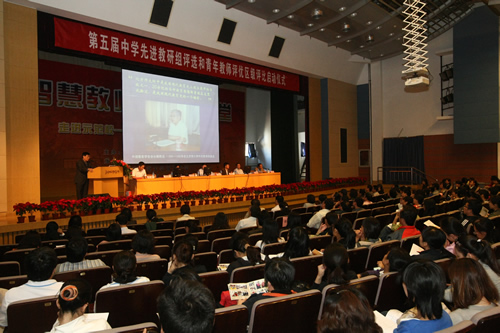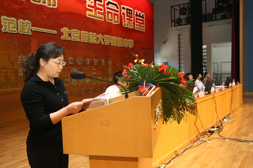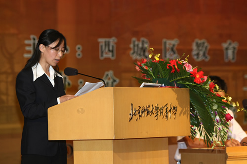 在首先举行的大会上,刘沪校长代表我校对参加活动的领导和老师表示热烈欢迎,并向来宾简要介绍了我校的情况;华夏女中和十五中的教学干部汇报了“双优评比”初评工作;王俊芳院长宣读了双优评选评委名单,与会领导为评委颁发了聘书;我校语文组陶小苏老师代表评委发言;十四中李存秀老师代表参评教师发言;最后赵蓬欣副主任讲话,对区域调整后新西城的教育提出了更高的要求和希望。