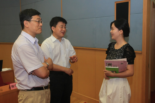 张媛媛老师课后与专家交流 (左一:韩宝成教授    左二:霍庆文教授)