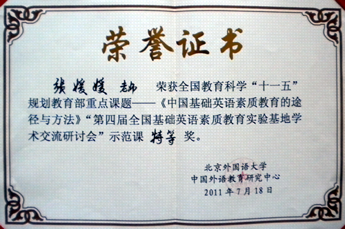 张媛媛老师获全国英语教育研讨会示范课特等奖