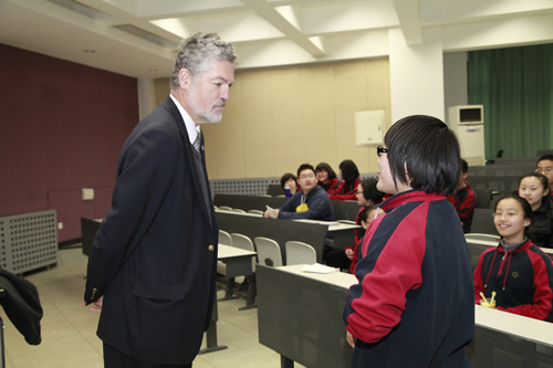William Whobrey 博士的研究领域为中世纪德国及欧洲文化,也曾经在中学里担任过德语教师,现在耶鲁大学教授研究生的课程,并主管耶鲁大学的海外交流项目。William Whobrey 博士对我校学生表现出来的热情大方表示极为赞赏。