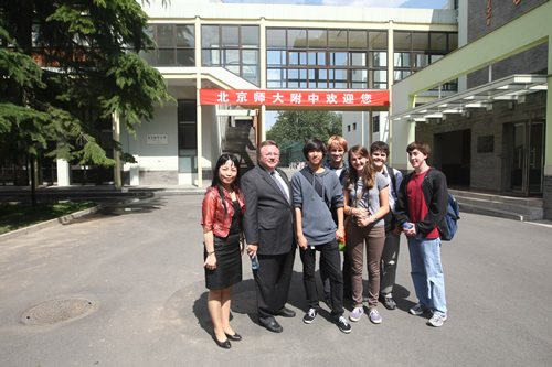 访问团一行深入课堂听课,观看了我校学生精彩的文艺演出,参观了美丽的校园,和我校师生进行了亲切交流。本杰明・富兰克林高中校长Rusnak博士为我校高一年级学生做了有关美国历史和教育的讲演,并诚挚邀请附中学子到美国学习交流。同学们听得兴趣盎然,并在提问环节和Rusnak博士进行深入互动。Rusnak校长对我校师生的高素质以及优秀的校园文化建设给予高度赞扬。