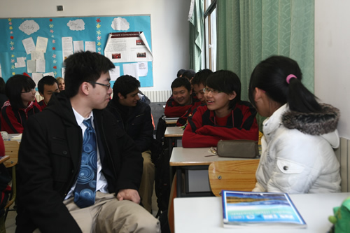 今年初,为促进我校教育的国际化,落实对外合作办学工作,刘沪校长一行访问了美国多所公立及私立学校,其中一所为位于纽约市中心的私立学校Trinity School。3月29日上午,美国Trinity School师生代表团一行10人来到我校,刘沪校长、李敏副校长及相关主任和老师们进行接待,并对访问团的到来表示了热烈的欢迎。访问团参观了校园,并走进高一10班的英语课堂,与师生们进行了友好交流。先进的设施、美丽的环境、优秀的师生使访问团一行流连忘返。