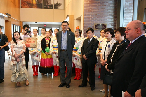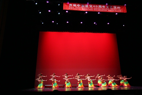 受加中文化友好交流协会邀请, 我校舞蹈团师生26人在刘沪校长的带领下于7月27日――8月1日赴加拿大参加了由我国驻加拿大使馆及总领馆举办的庆祝中加建交40周年文艺演出。在多伦多richmonhill剧场和渥太华市政广场,同学们克服长途跋涉的艰辛,完美演绎了《天路》、《远方的客人请你留下来》、《鱼儿》、《高高的苗岭》、《竹之梦》、《杨柳青》等不同风格的舞蹈,受到了当地华人华侨和加拿大人民的热烈欢迎和高度赞扬,掌声、叫好声连绵不绝。演出结束后,观众们久久不愿离去,纷纷上前与我校演员合影。我驻加拿大大使馆文化参赞亲切接见了舞蹈团师生并与同学们合影留念。他感谢同学们不远万里来到加拿大用美妙的舞姿传播中华文化、传递中国人民的友谊。刘沪校长向驻加拿大大使馆赠送了我校黄全信老师的书法作品和学校画册。加方市长、议员等知名人士观看了演出。
