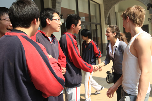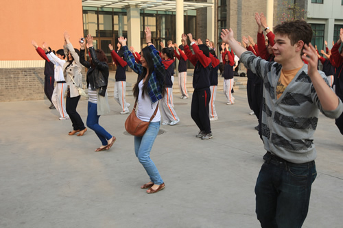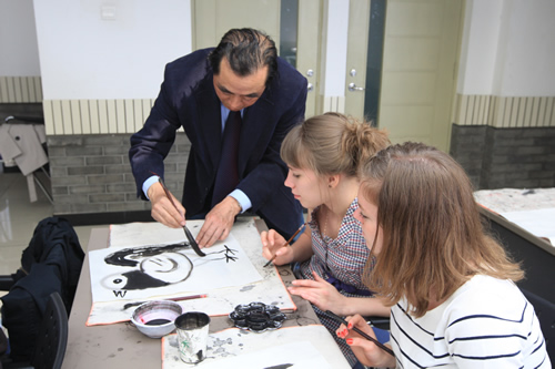 4月9日,瑞典斯德哥尔摩国际学院师生40人来我校学习国画和太极拳,并与高二年级同学进行了热烈的交流。