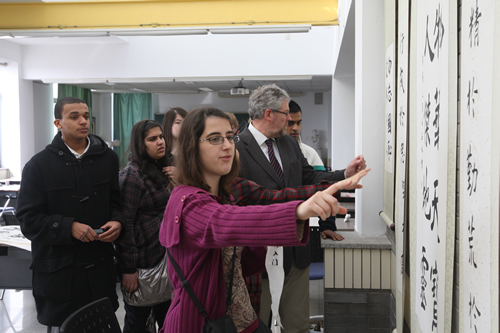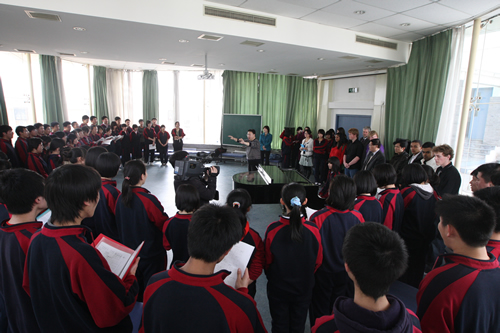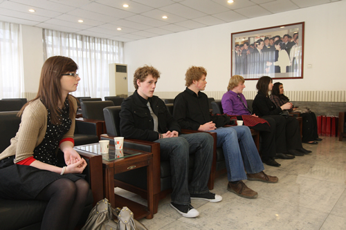 3月23日,来自友好校英国 the Sixth Form College,Solihull 的两位老师和九位同学到我校访问,刘沪校长与客人们进行了亲切的交谈。英国师生在我校参观校园、进班听课、与中国同学一起谈心和游戏,并欣赏了我校合唱团同学们的优美歌声。下午课后,中英两国同学举行了国际经济问题研讨会,高二8班全体同学和高二11班部分同学参加会议,所有同学在会上的发言全部采用英语。
