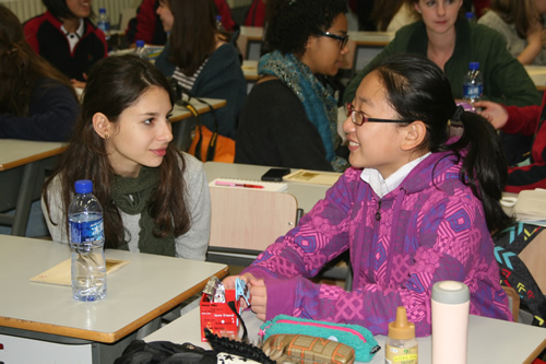 10月22日下午,来自英国South Hampstead High School 的两位老师和二十位同学到我校访问。她们参观了校园,听了卫刚老师的历史课,并和高二11班的同学们进行了友好交流。通过交流活动两校师生互相了解到中英两国不同的校园文化生活,增进了双方的友谊。