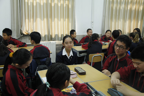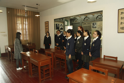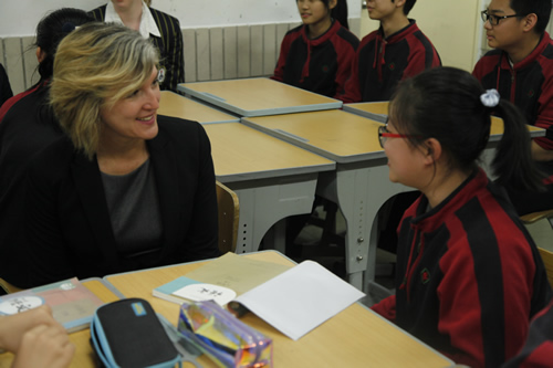 育文武女校的师生们首先来到初二12班,与该班学生一起上了一节马楠老师的英语课。精心的课堂设计和丰富的课堂活动为两校学生提供了良好的学习交流平台,同学们不仅学到了知识,而且加深了对彼此的了解。育文武女校师生还体验了具有中国特色的课外活动――课间操,参观了我校的文化设施和学科专业教室。随后,在接待室举行的欢迎仪式上,梁原草副校长代表学校对育文武女校师生的到来表示了热烈的欢迎,并介绍了学校的办学理念和国际化教育现状。育文武女校Arends主任对我校全人格教育理念表示赞同,并期待未来能够与我校开展更加深入的师生交流项目。最后,双方互赠学校吉祥物,并合影留念。