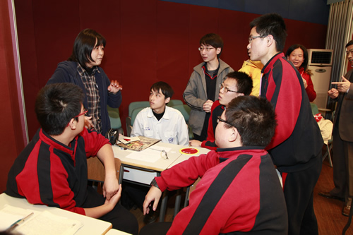 台湾师生一行首先参观了我校的文化景观――杏坛、三味书屋、民国时期台湾作家林海音曾读过书的师大附小教室楼和林砺儒校长塑像。接着他们和我校同学一起听了英语和语文课,分别是国际课程班外教讲授的TOEFL指导课和郑媛老师讲解的古文课。在感受了我校课堂之后,台湾师大附中的学生和我校学生进行了友好交流。交流活动由轻松的游戏――脑筋急转弯开场,现场气氛活跃。台湾同学合唱,我校同学也一展歌喉。两名台湾女同学还为大家表演了一段自编的牙买加风情舞,赢得全场的掌声和欢呼。同学们交流得热火朝天。半天的时间虽短,却让两岸师生加深了了解。大家相约像交流会上大家同唱的歌曲《友谊地久天长》一样。