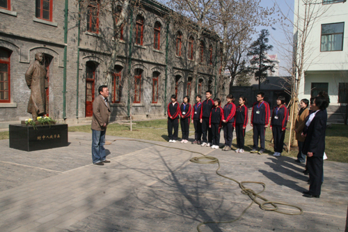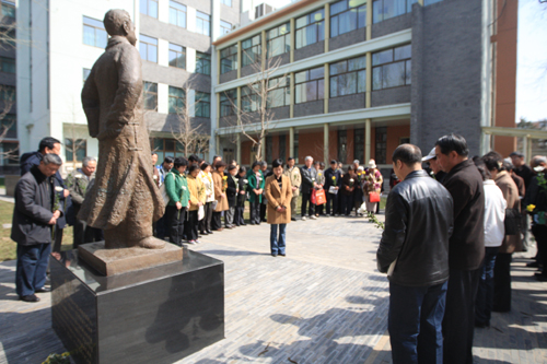 3月28日,我校73届初中、75届高中部分校友返校,在钱学森铜像前举行了悼念活动。
