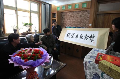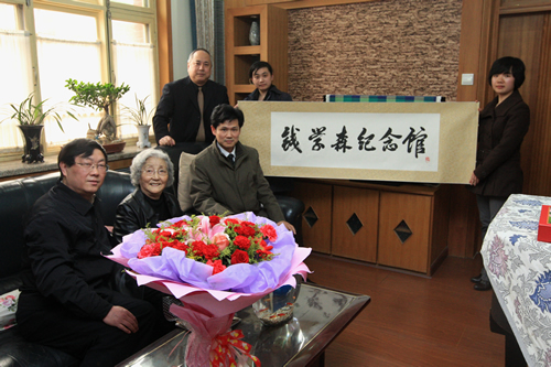 钱老之子钱永刚教授和钱老之孙钱磊少校接待了刘沪校长和师生们。