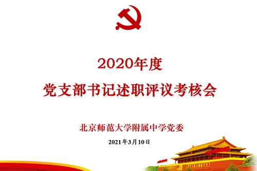 3月10日下午,学校党委召开2020年度党支部书记述职评议考核会。初一党支部书记王颢、初二党支部书记祁继梅、初三党支部书记额尔敦朝鲁、高一党支部书记包秀珍、高二党支部书记郭玮、高三党支部书记邓懿姝、行政党支部书记温雅等七位同志进行了现场述职。学校党委成员和北师大党委第五组组织员魏天经同志出席会议。