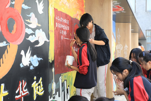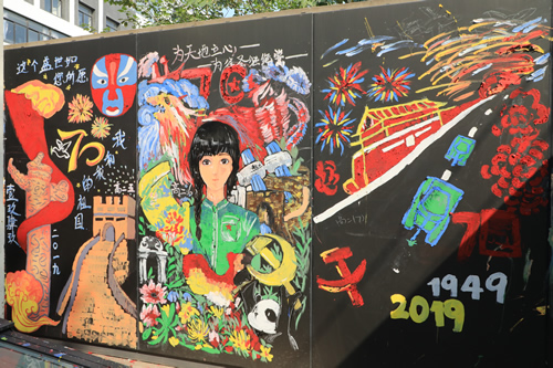 校团委组织各支部开展以“表白祖国”为主题的涂鸦墙大赛。参与的师生利用课余时间现场构思、集体创作,用明亮的色彩纵情抒发对祖国母亲的热爱。