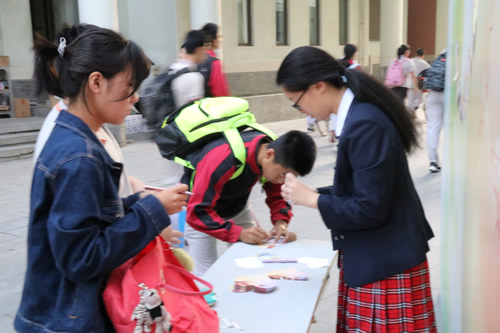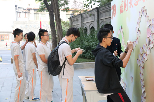 校团委、学生会还共同举办“祖国,我想对您说”祝福祖国活动。9月29日清晨,同学们将一颗颗承载自己对祖国美好祝愿的心形卡片激动的张贴在祖国的版图上,每一张卡片都表达着同学们悠悠的爱国心,浓浓的家国情,深深的报国志。