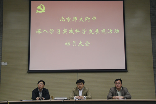 会上,刘沪校长作了动员报告,对此次活动提出了四点希望,要求全体党员、干部要深入学习实践科学发展观理论,真正达到“党员干部受教育、科学发展上水平、人民群众得实惠”的总体目标。许建勇书记向全体党员介绍了我校深入学习实践科学发展观活动实施方案。宣武区教育委员会副主任、宣武区教育系统深入学习实践科学发展观活动第二指导联络组组长李松山同志代表两委讲话,肯定了学校前一阶段的工作,并对下一步的学习实践活动提出了明确要求。