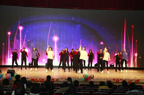 初一年级组为大家献上独树一帜的集体舞《附中健康歌》。老师们穿上附中校服,让大家眼前一亮。老师们跟随着动感欢快的节奏声跳起整齐划一的集体舞,掀起本场教师联欢会的第一个高潮!