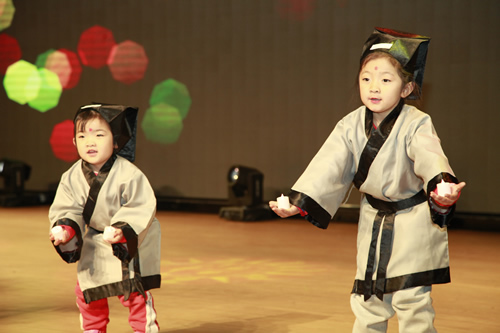 附二代们今年给老师们上演一出“催泪大戏”――稚气未脱的一群小豆丁齐刷刷地穿着中国传统的汉服,手中拿着线编书,一本正经地为大家朗诵《游子吟》。孩子们萌态可掬的模样使所有观众都忍俊不禁,孩子们想表达的对父母的感恩之心更是让人无比动容。