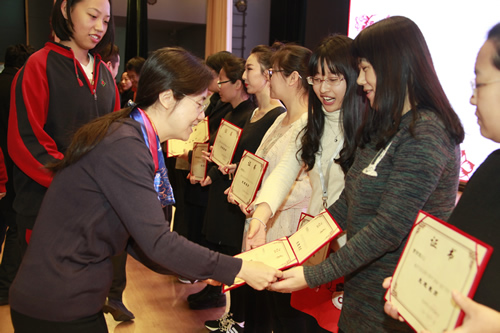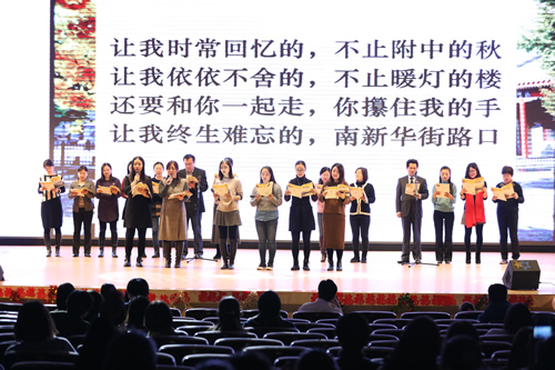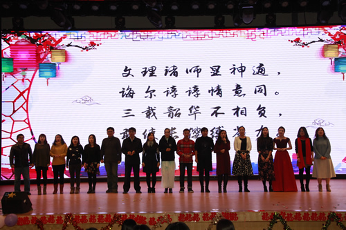 最后,本届教师联欢会在行政会领导们和艺术组老师们热情洋溢的歌曲《相亲相爱的一家人》中画上了圆满的句号。行政会领导们多才多艺,展现的动人歌喉折服了现场的每一位观众,叫好声四起,将整场晚会推向了高潮。