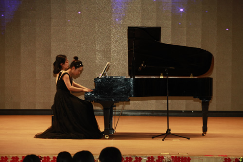 艺术组两位美女“花旦”为晚会献上一曲《匈牙利狂想曲》,技惊四座的四手联弹让大家惊叹于两位艺术家细腻而严谨的配合的同时,完全沉醉在完美动听的乐曲中。