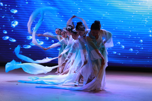 教师舞蹈团带来的《浏阳河》舞姿优美,演绎着对祖国和大好河山的赞美。举手投足间尽显女教师们的优雅风范。要知道,每一个优美而华丽的转身,都是她们用午休时间的刻苦排练换来的,现场的超高人气就是对她们最好的褒奖。