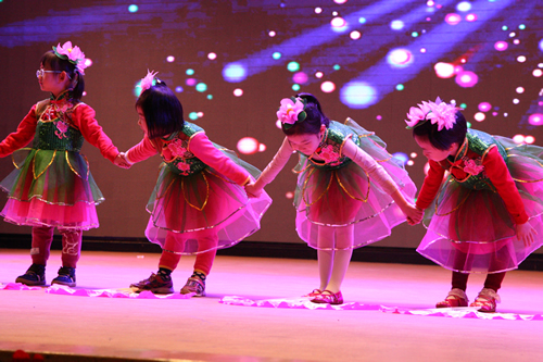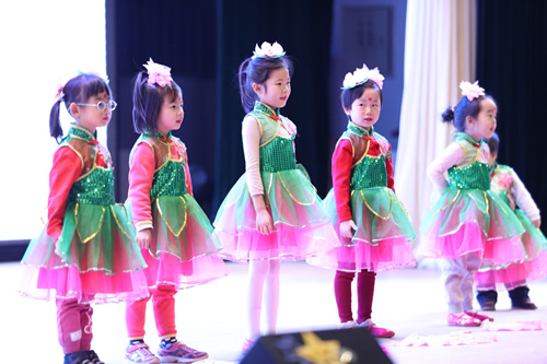 附二代们真是萌萌哒!稚气未脱的一群小豆丁齐刷刷地穿着闪耀的绿色服装,化作活泼可爱的小精灵,随着欢快的音乐在台上挥舞着粉色的扇子,萌态可掬的模样使所有观众都忍俊不禁。台上孩子一分钟,台下父母把腰弓,一个个举起的相机、手机无不暴露了自己的真实身份――小小明星的大龄粉丝!
