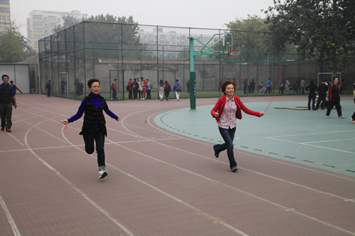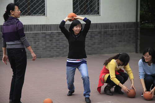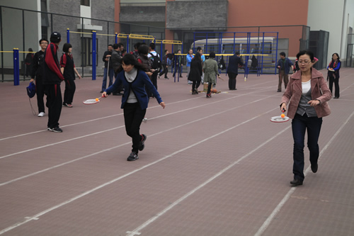 10月26日下午,附中在操场上举行了充满欢乐气氛的教职工运动会。运动会所设项目丰富有趣,包括30米赶猪、30米托球跑、30米跳绳、定点投篮、沙包掷准、足球射门、托排球、踢毽、仰卧起坐、投实心球等,其中体育老师专门为本次运动会安排的集体活动项目“不倒森林”最受大家欢迎。广大教职工争先恐后参赛,各年龄段运动员都在场上大显身手,操场上欢声笑语不断。