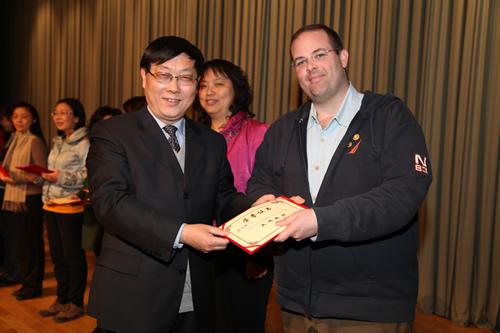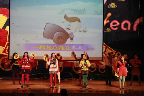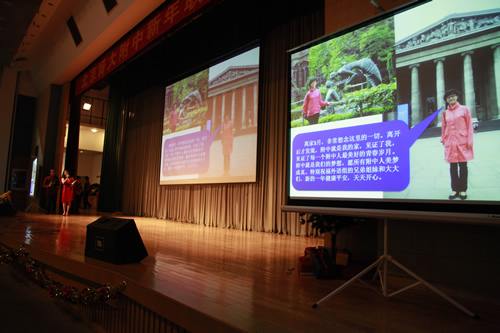 三次抽奖活动及动作、语言等游戏不断穿插在节目之中,为晚会增添了悬念、惊喜与趣味。两位外教的莅临也成为了本次联欢的一大亮点!