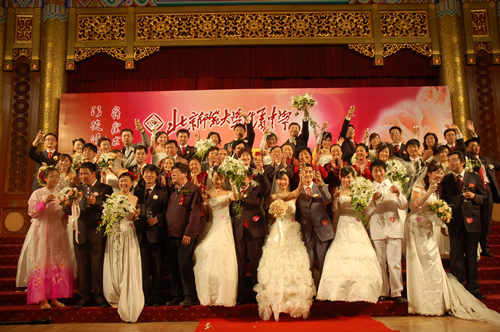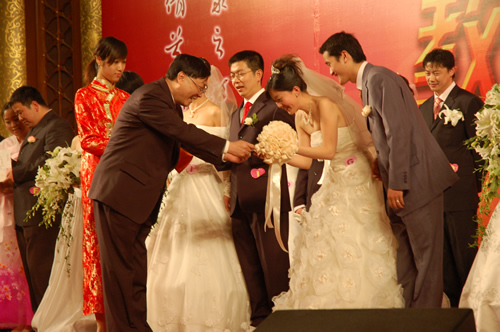 2006年4月22日,春光明媚,百花盛开。校工会、校青年教师研究会和教工团支部联合为18对新人(其中19位为本校教师)举办盛大的集体婚礼。婚礼在北京饭店金色大厅举行,新人的亲友和我校教职工共300人参加,区教育工会主席张雅玲同志、区教育工会女教职工委员会副主任赵连荣同志应邀出席。随着神圣的婚礼进行曲的奏响,18对新人手捧鲜花走上红地毯,前来祝贺的人群向他们发出阵阵欢呼。刘沪校长在婚礼上致贺词并向新人们赠送礼品,家长代表和新人代表分别在婚礼上讲话。婚礼自始至终在隆重、热烈、喜庆的气氛中进行,新人们及其亲友对学校为他们所付出的努力表示由衷的感谢。