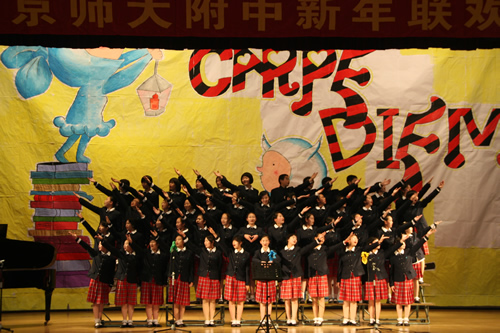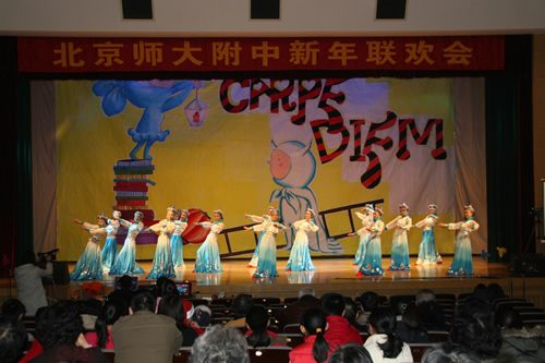 12月26日下午,包括离退休老同志参加的全校教职工元旦联欢会在礼堂举行,老师们演出了多姿多彩的文艺节目,校学生合唱团、舞蹈团的同学也在会上展示了他们平日里辛勤排练所取得的丰硕成果。联欢会上还有令人悬念迭生、笑声不断的抽奖、游戏等精彩环节,辛苦了一年的老师们在一起欢度了一个难忘的下午。