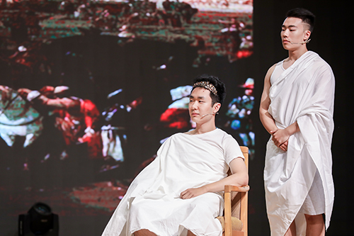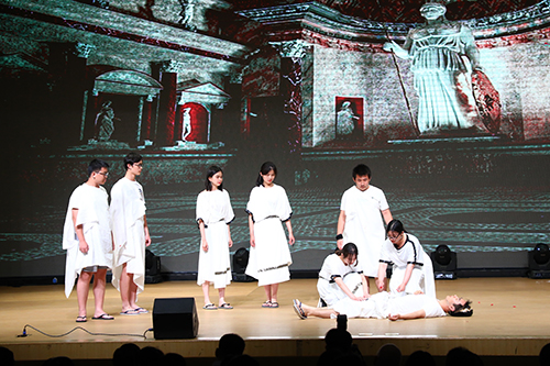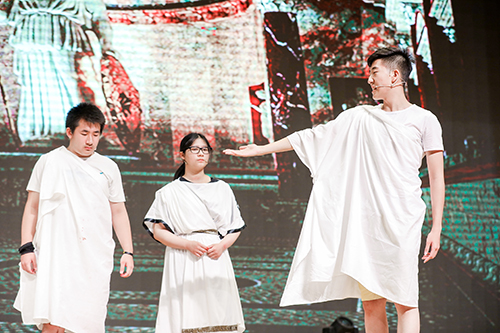 隆重的仪式之后,AP毕业演出在民族乐器和西洋乐器合奏表演《唱唱跑调》中拉开帷幕。随后,AP学生们演绎了莎士比亚的经典剧目《仲夏夜之梦》和《凯撒大帝》。全年级四十多名学生参与全英文表演,别致的服装道具、巧妙的剧情编排、演员们的生动表演,带给了观众一场全新的视觉盛宴。此次演出活动,使在场师生和家长不仅感受到莎士比亚戏剧的艺术造诣,而且体会到英语语言文学的巨大魅力。演出的最后,学生们倾情奉献了歌曲串烧《不说再见》,表达了学子们对母校老师、同学们的眷恋之情。