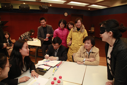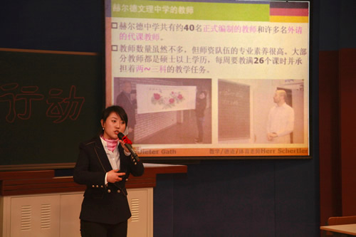 随后,杨周复部长助理和许琳主任参加了我校海外工作归来教师的交流分享活动,听取了李梦老师和刘莉娟老师的精彩演讲。两位领导分别发表了热情洋溢的讲话,对我校工作给予了充分肯定,并表示对师大附中的国际交流工作将给予更大的支持,刘沪校长代表我校表示感谢。教育部和国家汉办领导还兴致勃勃地参观了校园里的杏坛、三味书屋和钱学森纪念馆等景点。