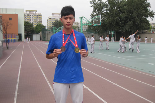 我校同学韩伟宸、王若西在5月28、29日的北京市青少年锦标赛中分获男子400米栏、女子三级跳远冠军,秦强同学获男子跳远第四名。