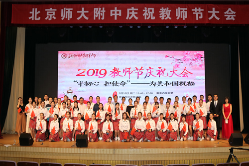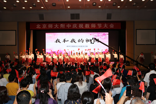 最后,附中合唱团的学生和全场教师合唱《我和我的祖国》,庆祝第三十五个教师节,庆祝中华人民共和国成立70周年。