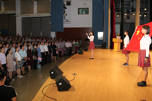 在全体师生观看了首都教育专题片《黄会林:我和我的祖国》之后,开学典礼在庄严的国歌声中拉开帷幕。王莉萍校长在致辞中为同学们送上新学期的祝福,她寄语附中学子心怀理想、肩负使命,坚信奋斗的价值。她希望全校师生珍惜韶华,发愤图强,用艰苦奋斗的实际行动为新中国70华诞献礼。