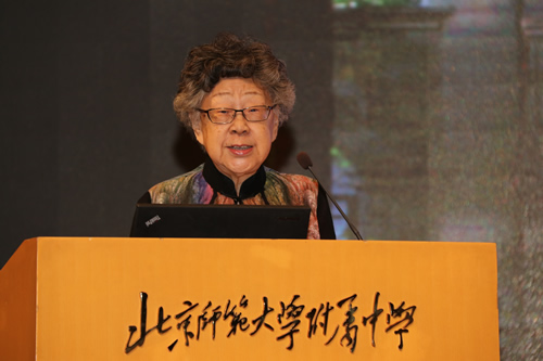 85岁高龄的黄会林老学长精神矍铄、步履矫健地走上讲台,深情地回忆69年前附中给予她的温暖与幸福,回忆当年和同学们怀着一颗赤诚、纯真的心,以把自己的一切献给祖国作为最大的光荣。她说:“1950年10月,美国侵朝战争爆发了,战火很快烧到鸭绿江边。全校师生群情激奋,纷纷要求参军赴朝,保家卫国。许多同学,也包括我,贴在墙上的,交给组织的,已不是墨写的决心,而是血写的誓言,大家的想法很简单,那就是用实际行动去践行崇高的理想,报效祖国,报效人民。”新学期伊始,正是祖国迎来70周年华诞的前夕,黄会林老学长为附中学子送上一句叮嘱,那就是“立志成才,胸怀祖国”。她说:“你们成长于美好的时代,还将迎来更好的时代,但不要忘记,这个时代的造就,是无数人用巨大的代价换来的。希望大家在享受这份安全感的同时,也保有一份责任感;既要实现自我价值,也要把这份价值传递下去,各出所学,各尽所知,为更高的目标而不断努力。你们的青春潜力,便是民族的青春潜力,你们的无限可能,便是国家的无限可能。希望各位同学努力挖掘自己的潜质,熔铸自己的才能,锤炼自己的品质,为祖国锻造出无可替代的栋梁!”