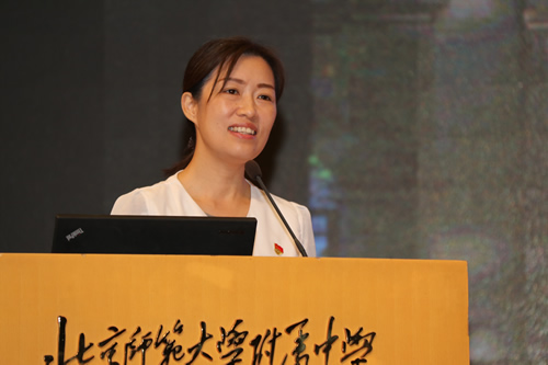 西城区教工委何景副书记在讲话中代表西城区教委表达了对附中的关怀和肯定。她希望附中在新学年继续发扬优良传统,为祖国培养出更多能担大任的优秀接班人。