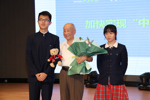 在授课最后,88岁高龄的钟老深情地引用了毛泽东主席的讲话寄语当代青少年:“世界是你们的,也是我们的,但是归根到底是你们的,你们青年人朝气蓬勃,正在兴旺时期,像早上8、9点钟的太阳,希望寄托在你们的身上。”希望同学们能够热爱党,热爱祖国,热爱生命,努力学习,加快实现我们共同的“中国梦”!