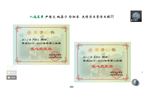 梁原草副校长宣读本学期获得爱心抗疫奖、自主自律奖和最佳贡献奖的名单,班主任们通过线上的方式为获奖的同学颁发奖状。