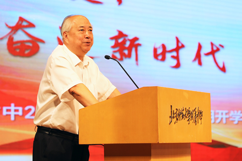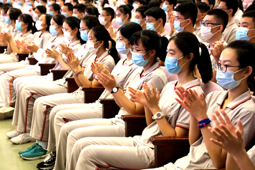 钱永刚教授首先对新入学的同学们表示祝贺,并强调能进入附中学习,是对同学们过去几年努力学习的肯定和回报。第二,钱教授向我校钱学森班送来了一个“迟到的祝贺”,2019年是我校钱学森班成立的第十个年头。钱教授说,附中“钱班”走过的这个十年是附中在改革开放之后的校史当中非常亮丽的一笔。最后,钱教授又从我校校友赵世炎的故事谈起了中国共产党建立之初的艰难;谈起了新中国建立之后,毛主席提出要进行火箭导弹试验时我们所面临的巨大挑战;谈起了北斗卫星,谈起了中国航天;谈到我们今天所看到的、所享受到的所有收获,都是从当年的一个个“不可能”开始的。钱教授寄语今天附中的青年一代努力学习,敢于挑战,继续创造中国未来的无限可能!