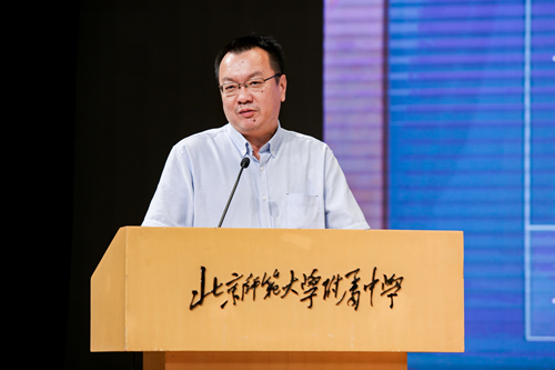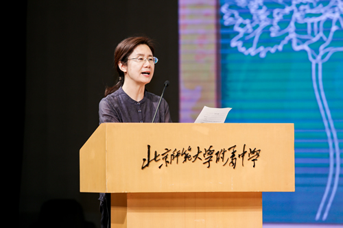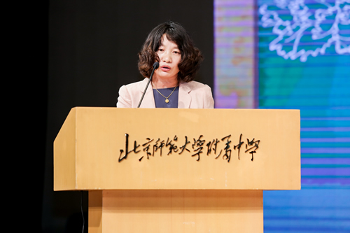 王莉萍校长为教师节致辞。王校长首先代表学校领导班子的全体成员,祝全体教师节日快乐。接着,她高度评价了附中教师在“为党育人,为国育才”的信念指引下,在疫情期间坚守岗位、勇于担当的使命感和责任感。